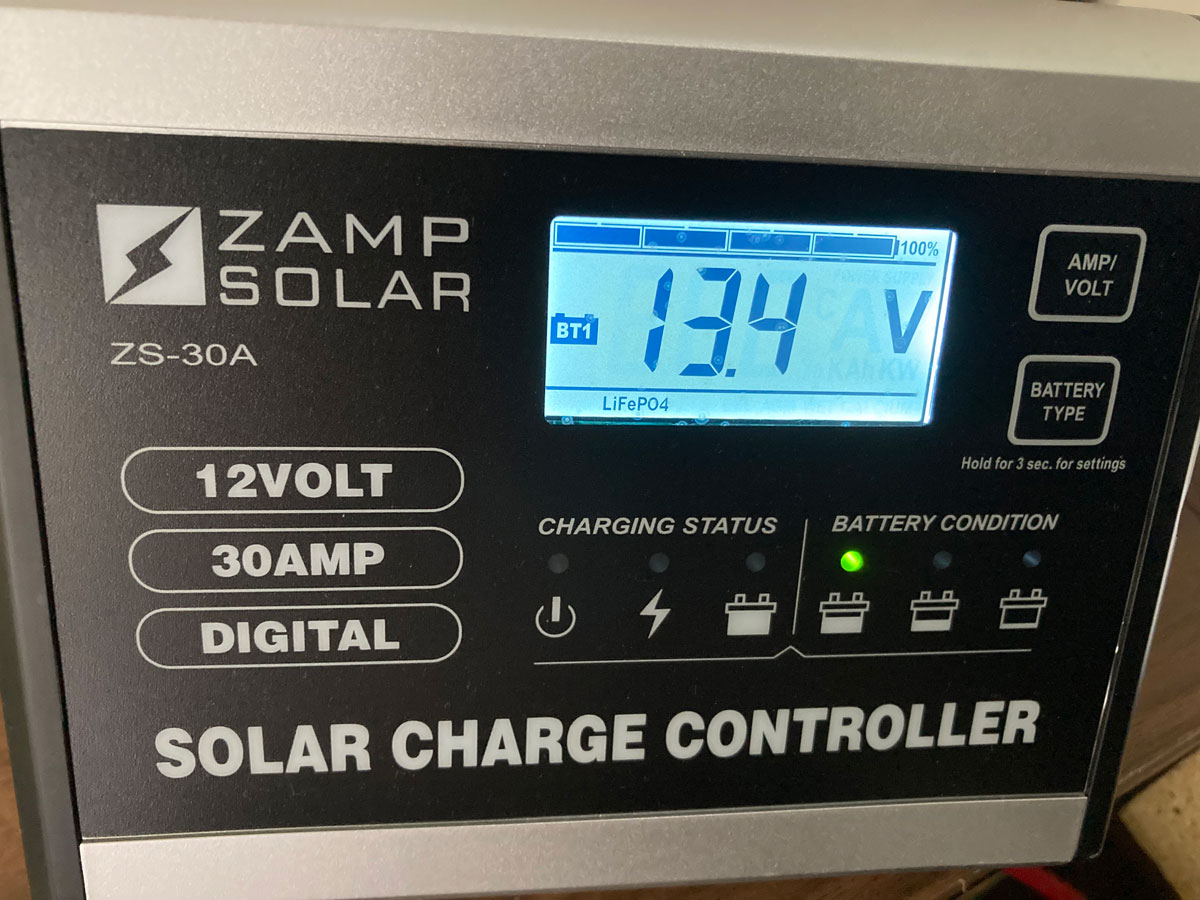 I started by heading up to the roof to unplug the two solar panels from the plug box. (This is a highly recommended step, as depending where you are on the planet and what your current weather is … your panels could be outputting quite a bit of current.) Back down in the coach, I confirmed that there was no solar input to the controller.